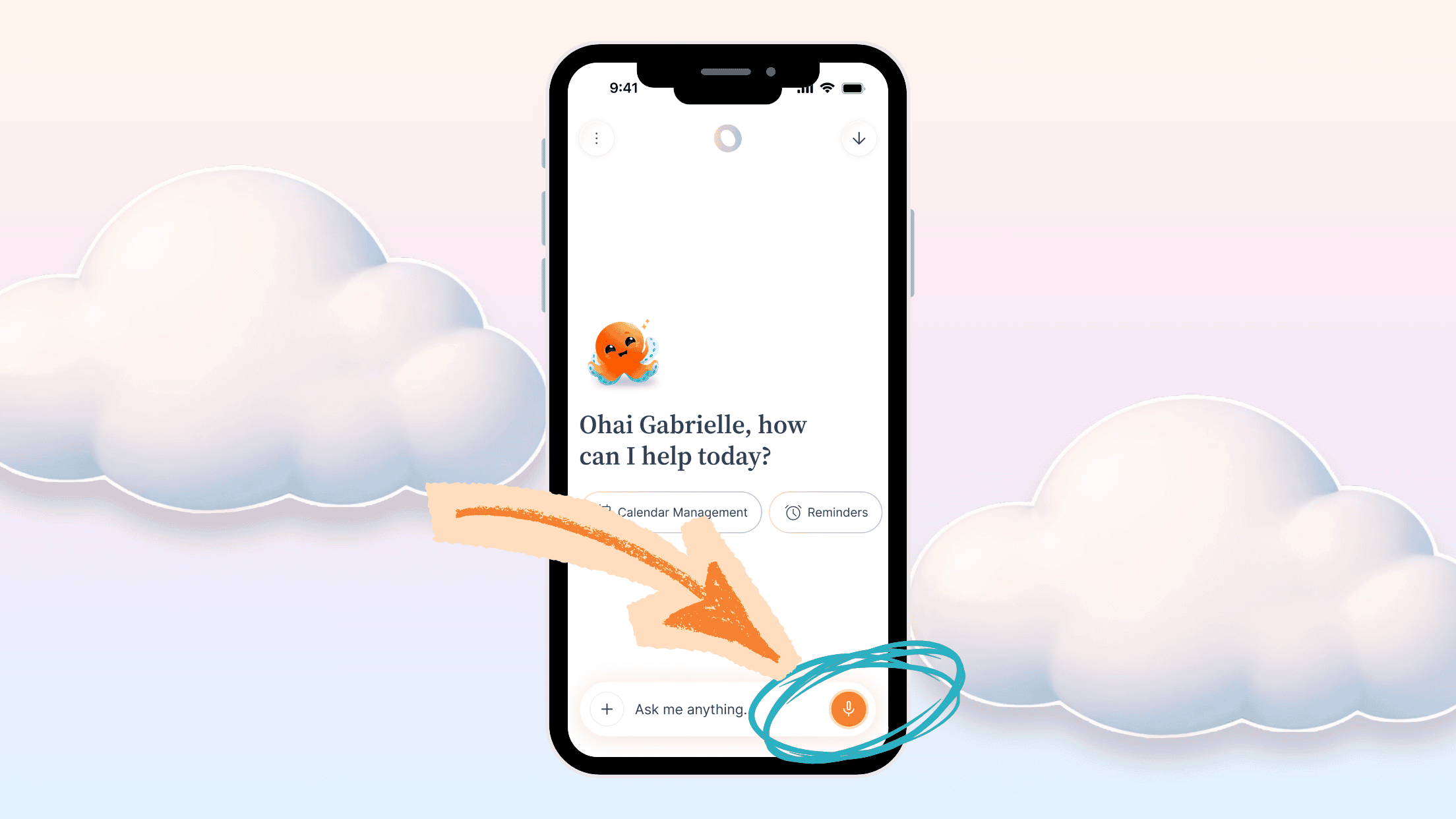 Tap the microphone, do a full brain dump, and O will sort it out. It responds in both audio and text so you can keep moving without stopping to look at your phone.